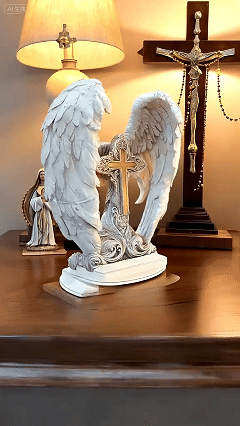 🪽✨ Finely detailed wings gracefully wrap around the cross, symbolizing divine protection and unwavering faith, filling your space with a sense of peace and spiritual comfort.